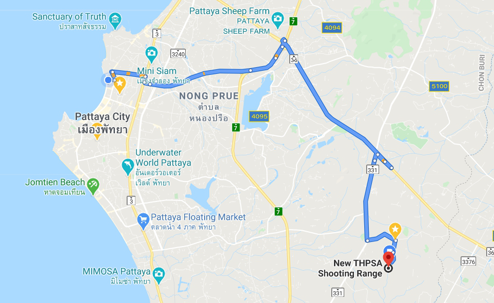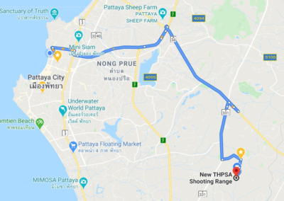 The Shooting Range is located inside the Sports Authority of Thailand’s Regional Training Center. You can Google for “New THPSA Shooting Range” (or GPS coordinate 12.8485604,101.0356645).